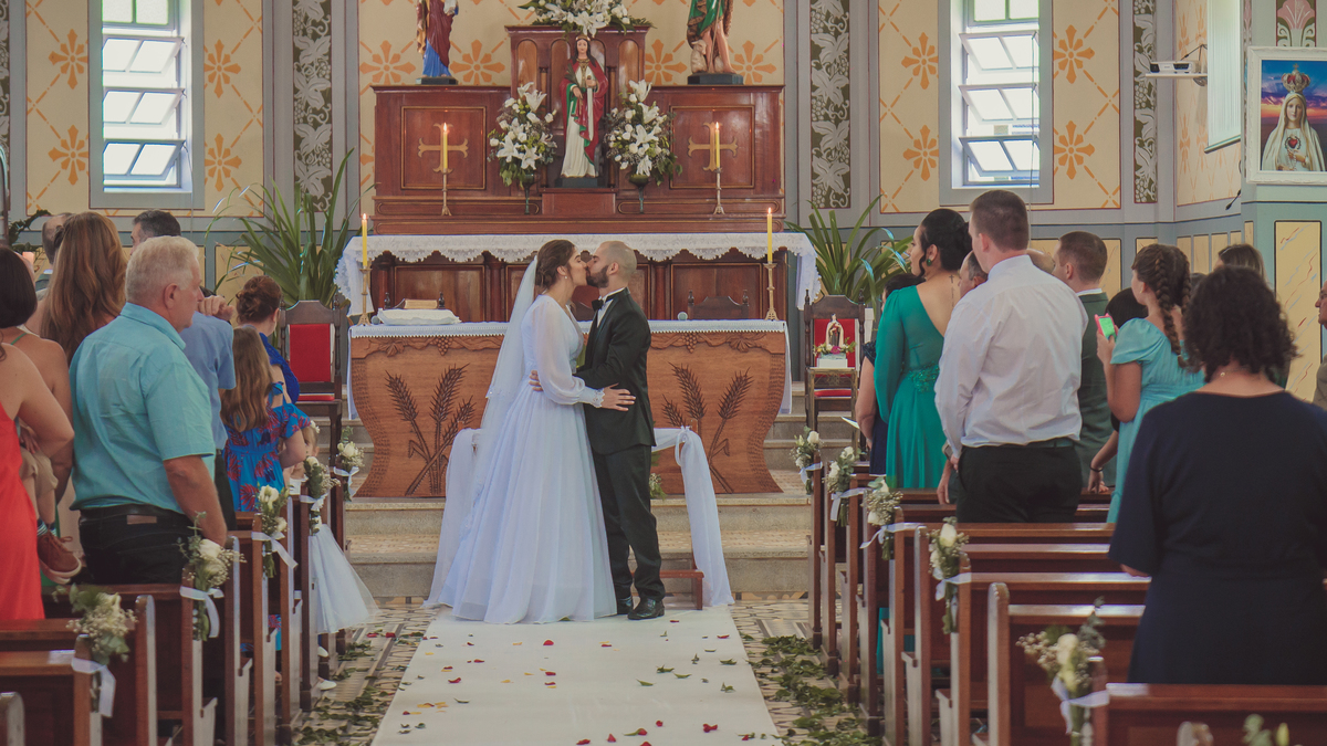 Érika e Denis decidiram se casar no dia 26 de Dezembro no ano de 2021 na igreja Matriz da cidade de Vitor Meireles/SC.