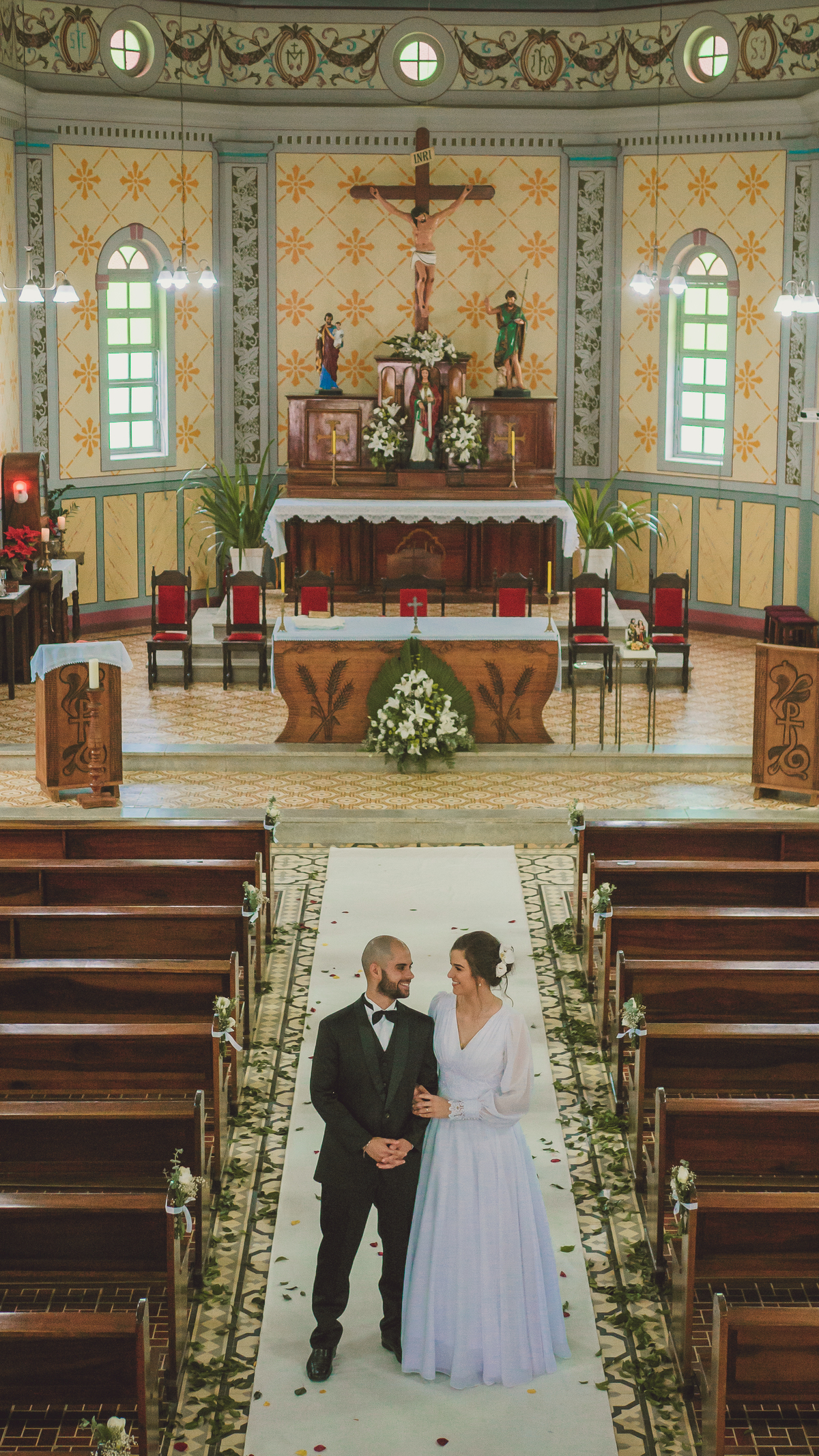 A oração e a devoção fazem parte da vida desse casal e juntos com a presença de Deus eles celebraram com seus amigos e familiares a missa da sagrada família.