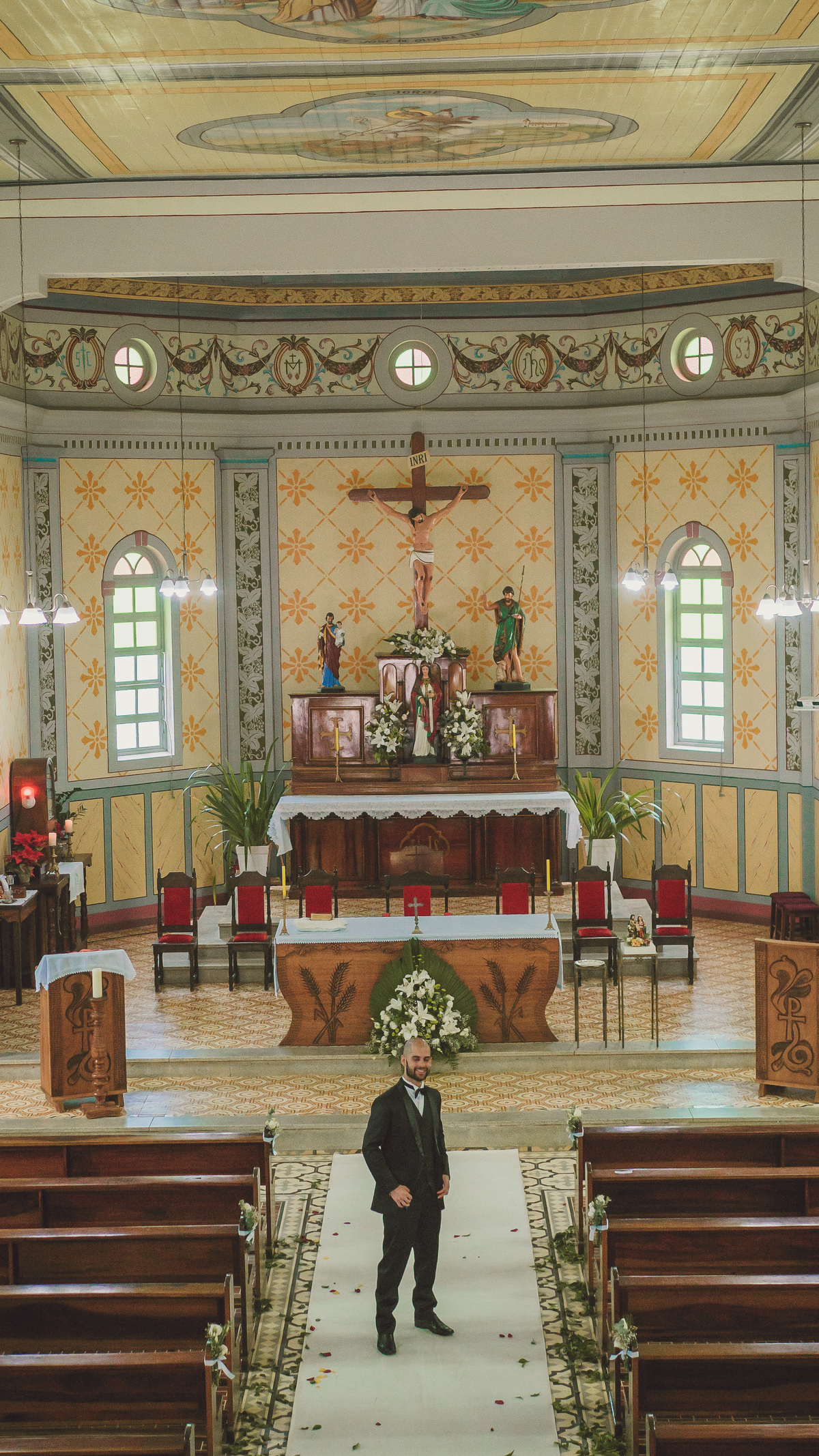 Um local muito especial para a noiva pois a igreja é praticamente no quintal da casa dos pais da Érika que cresceu e frequentou a igreja que fica literalmente há alguns metros da casa dos pais.
